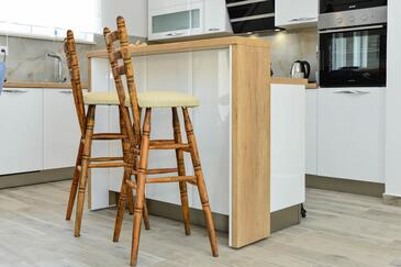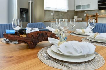 Haus bietet Platz für 8 Gäste. Die Betten sind in Schlafzimmern, die es 4 gibt, innerhalb einer Gesamtfläche von 130m2, angeordnet. Die Gäste haben eine eigene Terrasse zur Verfügung, auf der sie in warmen Sommernächten genießen können. Für vollen Genuss und Entspannung gibt es einen privaten Grill für Gäste dieser Unterkunft. Während ihres Aufenthalts können sich Gäste im privaten Schwimmbad entspannen. In der gebuchten Unterkunftseinheit zahlt man am Ort ein Depositum ( der Preis ist an der Internetseite angeführt ).
