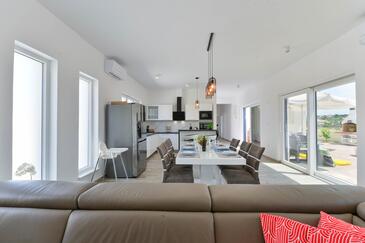 Haus bietet Platz für 8 Gäste. Die Betten sind in Schlafzimmern, die es 4 gibt, innerhalb einer Gesamtfläche von 130m2, angeordnet. Die Gäste haben eine eigene Terrasse zur Verfügung, auf der sie in warmen Sommernächten genießen können. Für vollen Genuss und Entspannung gibt es einen privaten Grill für Gäste dieser Unterkunft. Während ihres Aufenthalts können Gäste das gemeinsam zur Nutzung stehende Schwimmbad benutzen.
