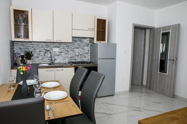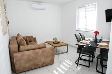 Ferienwohnung bietet Platz für 6 Gäste. Die Betten sind in Schlafzimmern, die es 2 gibt, und in Wohnzimmer, innerhalb einer Gesamtfläche von 74m2, angeordnet. Die Gäste haben eine eigene Terrasse zur Verfügung, auf der sie in warmen Sommernächten genießen können. Es ist erlaubt, Speisen auf dem Gemeinschafts-Grill vorzubereiten. Während ihres Aufenthalts können Gäste das gemeinsam zur Nutzung stehende Schwimmbad benutzen.