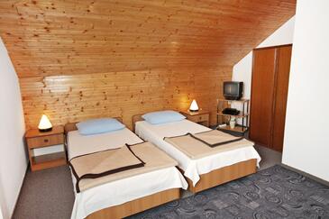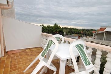 Ferienwohnung bietet Platz für 4 Gäste. Die Betten sind in Schlafzimmern, die es 2 gibt, innerhalb einer Gesamtfläche von 44m2, angeordnet. Die Gäste haben eine eigene Terrasse zur Verfügung, auf der sie in warmen Sommernächten genießen können. Das Apartment bietet Meerblick. Es ist erlaubt, Speisen auf dem Gemeinschafts-Grill vorzubereiten.