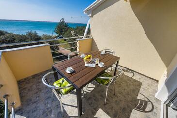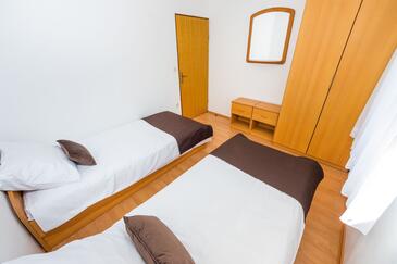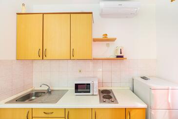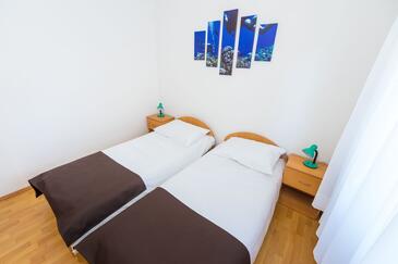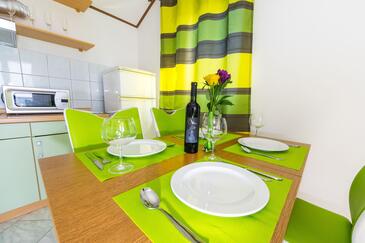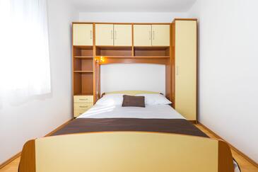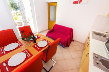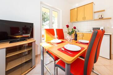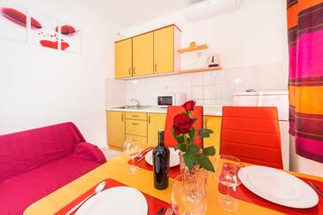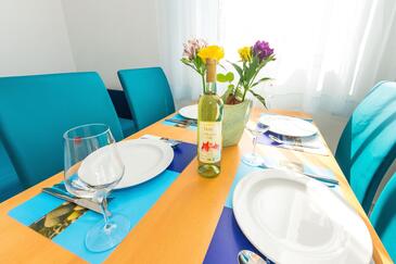 Ferienwohnung bietet Platz für 4 Gäste. Die Betten sind in Schlafzimmern, die es 1 gibt, und in Esszimmer, innerhalb einer Gesamtfläche von 30m2, angeordnet. Die Gäste haben eine eigene Terrasse zur Verfügung, auf der sie in warmen Sommernächten genießen können. Das Apartment bietet Meerblick. Es ist erlaubt, Speisen auf dem Gemeinschafts-Grill vorzubereiten.