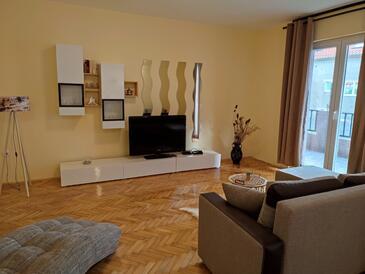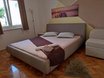 Ferienwohnung bietet Platz für 4 Gäste. Die Betten sind in Schlafzimmern, die es 2 gibt, innerhalb einer Gesamtfläche von 66m2, angeordnet. Die Gäste haben eine eigene Terrasse zur Verfügung, auf der sie in warmen Sommernächten genießen können. Das Apartment bietet Meerblick. Es ist erlaubt, Speisen auf dem Gemeinschafts-Grill vorzubereiten.