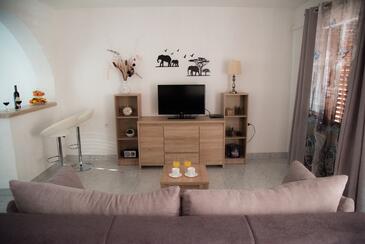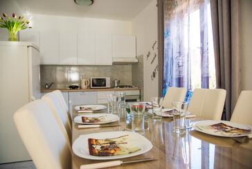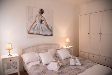 Ferienwohnung bietet Platz für 4 Gäste. Die Betten sind in Schlafzimmern, die es 2 gibt, innerhalb einer Gesamtfläche von 70m2, angeordnet. Die Gäste haben eine eigene Terrasse zur Verfügung, auf der sie in warmen Sommernächten genießen können. Es ist erlaubt, Speisen auf dem Gemeinschafts-Grill vorzubereiten. In der gebuchten Unterkunftseinheit zahlt man am Ort ein Depositum ( der Preis ist an der Internetseite angeführt ).