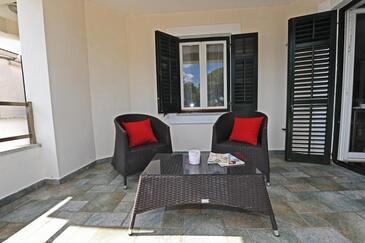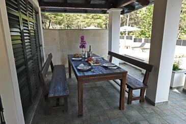 Haus bietet Platz für 8 Gäste. Die Betten sind in Schlafzimmern, die es 4 gibt, innerhalb einer Gesamtfläche von 213m2, angeordnet. Die Gäste haben eine eigene Terrasse zur Verfügung, auf der sie in warmen Sommernächten genießen können. Das Haus bietet Meerblick. Für vollen Genuss und Entspannung gibt es einen privaten Grill für Gäste dieser Unterkunft. Während ihres Aufenthalts können sich Gäste im privaten Schwimmbad entspannen. In der Unterkunftseinheit besteht die Möglichkeit des Mitbringens von Haustieren, und die Dienstleistung ist im Preis der Unterkunft enthalten.
