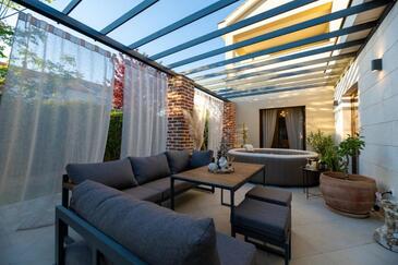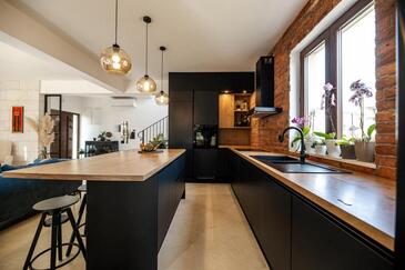 Ferienwohnung bietet Platz für 8 Gäste. Die Betten sind in Schlafzimmern, die es 4 gibt, innerhalb einer Gesamtfläche von 154m2, angeordnet. Die Gäste haben eine eigene Terrasse zur Verfügung, auf der sie in warmen Sommernächten genießen können. Für vollen Genuss und Entspannung gibt es einen privaten Grill für Gäste dieser Unterkunft. In der Unterkunftseinheit besteht die Möglichkeit des Mitbringens von Haustieren, und die Dienstleistung ist im Preis der Unterkunft enthalten.