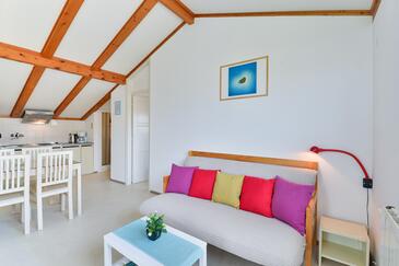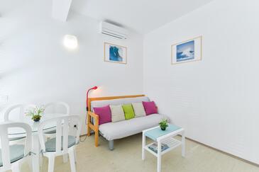 Ferienwohnung bietet Platz für 5 Gäste. Die Betten sind in Schlafzimmern, die es 1 gibt, und in Wohnzimmer, innerhalb einer Gesamtfläche von 41m2, angeordnet. Die Gäste haben einen eigenen Balkon zur Verfügung, auf der sie in warmen Sommernächten genießen können. Es ist erlaubt, Speisen auf dem Gemeinschafts-Grill vorzubereiten.