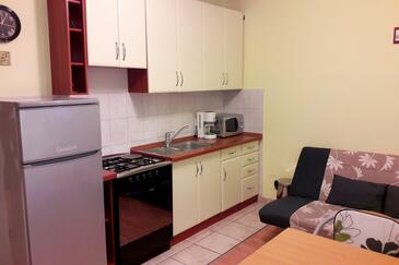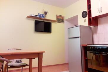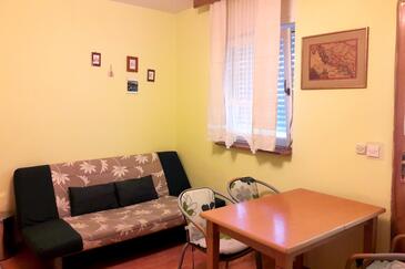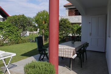 Ferienwohnung bietet Platz für 5 Gäste. Die Betten sind in Schlafzimmern, die es 2 gibt, und in Esszimmer, innerhalb einer Gesamtfläche von 38m2, angeordnet. Die Gäste haben eine eigene Terrasse zur Verfügung, auf der sie in warmen Sommernächten genießen können. Es ist erlaubt, Speisen auf dem Gemeinschafts-Grill vorzubereiten.