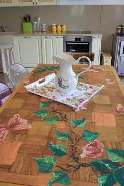 Haus bietet Platz für 8 Gäste. Die Betten sind in Schlafzimmern, die es 4 gibt, innerhalb einer Gesamtfläche von 115m2, angeordnet. Die Gäste haben eine eigene Terrasse zur Verfügung, auf der sie in warmen Sommernächten genießen können. Für vollen Genuss und Entspannung gibt es einen privaten Grill für Gäste dieser Unterkunft. Während ihres Aufenthalts können sich Gäste im privaten Schwimmbad entspannen. In der Unterkunftseinheit besteht die Möglichkeit des Mitbringens von Haustieren, und die Dienstleistung ist im Preis der Unterkunft enthalten.
