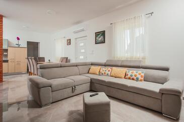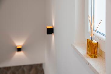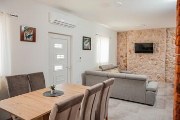Haus bietet Platz für 5 Gäste. Die Betten sind in Schlafzimmern, die es 3 gibt, innerhalb einer Gesamtfläche von 98m2, angeordnet. Die Gäste haben eine eigene Terrasse zur Verfügung, auf der sie in warmen Sommernächten genießen können.