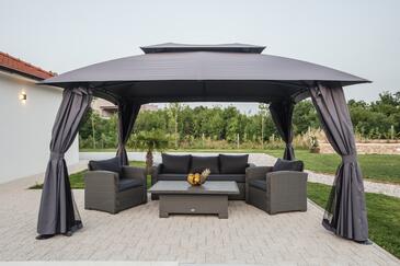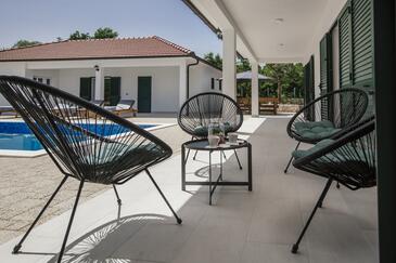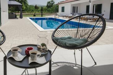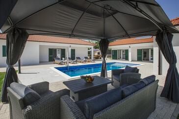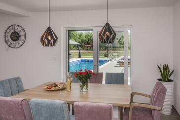 Haus bietet Platz für 8 Gäste. Die Betten sind in Schlafzimmern, die es 3 gibt, und in Wohnzimmer, innerhalb einer Gesamtfläche von 121m2, angeordnet. Die Gäste haben eine eigene Terrasse zur Verfügung, auf der sie in warmen Sommernächten genießen können. Für vollen Genuss und Entspannung gibt es einen privaten Grill für Gäste dieser Unterkunft. Während ihres Aufenthalts können sich Gäste im privaten Schwimmbad entspannen. Räume der gebuchten Unterkunftseinheit werden nicht in eine Ganze verbunden.