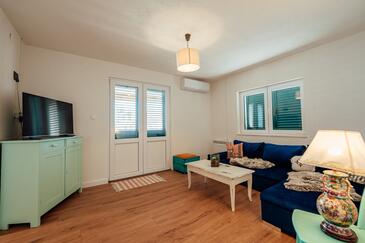 Haus bietet Platz für 6 Gäste. Die Betten sind in Schlafzimmern, die es 2 gibt, und in Wohnzimmer, innerhalb einer Gesamtfläche von 92m2, angeordnet. Die Gäste haben eine eigene Terrasse zur Verfügung, auf der sie in warmen Sommernächten genießen können. Für vollen Genuss und Entspannung gibt es einen privaten Grill für Gäste dieser Unterkunft.
