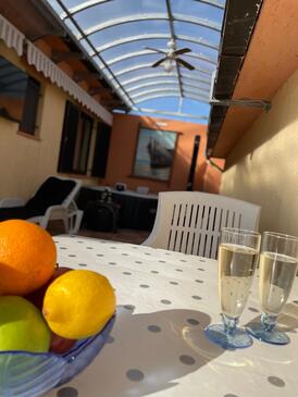Haus bietet Platz für 8 Gäste. Die Betten sind in Schlafzimmern, die es 3 gibt, und in Wohnzimmer, innerhalb einer Gesamtfläche von 104m2, angeordnet. Die Gäste haben eine eigene Terrasse zur Verfügung, auf der sie in warmen Sommernächten genießen können. Es ist erlaubt, Speisen auf dem Gemeinschafts-Grill vorzubereiten. Während ihres Aufenthalts können sich Gäste im privaten Schwimmbad entspannen.