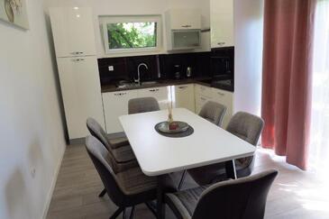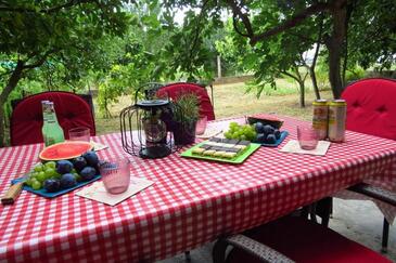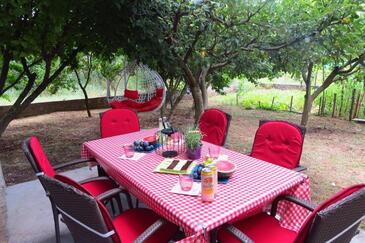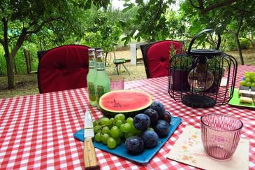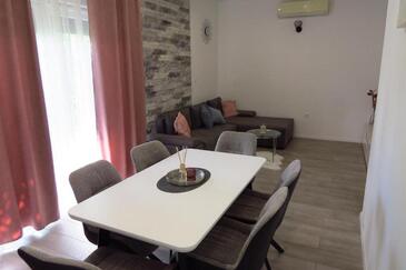 Ferienwohnung bietet Platz für 6 Gäste. Die Betten sind in Schlafzimmern, die es 3 gibt, innerhalb einer Gesamtfläche von 100m2, angeordnet. Die Gäste haben eine eigene Terrasse zur Verfügung, auf der sie in warmen Sommernächten genießen können. Es ist erlaubt, Speisen auf dem Gemeinschafts-Grill vorzubereiten.