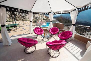 Haus bietet Platz für 14 Gäste. Die Betten sind in Schlafzimmern, die es 6 gibt, und in Wohnzimmer, innerhalb einer Gesamtfläche von 237m2, angeordnet. Die Gäste haben eine eigene Terrasse zur Verfügung, auf der sie in warmen Sommernächten genießen können. Für vollen Genuss und Entspannung gibt es einen privaten Grill für Gäste dieser Unterkunft. Während ihres Aufenthalts können sich Gäste im privaten Schwimmbad entspannen. In der Unterkunftseinheit besteht die Möglichkeit des Mitbringens von Haustieren gegen Aufpreis. Räume der gebuchten Unterkunftseinheit werden nicht in eine Ganze verbunden.