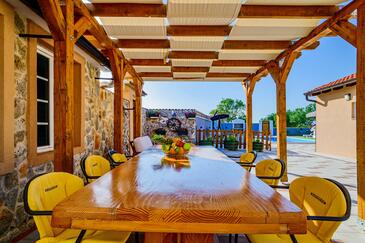 Haus bietet Platz für 6 Gäste. Die Betten sind in Schlafzimmern, die es 2 gibt, und in Wohnzimmer, innerhalb einer Gesamtfläche von 71m2, angeordnet. Die Gäste haben eine eigene Terrasse zur Verfügung, auf der sie in warmen Sommernächten genießen können. Für vollen Genuss und Entspannung gibt es einen privaten Grill für Gäste dieser Unterkunft. Während ihres Aufenthalts können sich Gäste im privaten Schwimmbad entspannen.