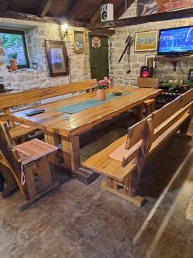 Haus bietet Platz für 8 Gäste. Die Betten sind in Schlafzimmern, die es 3 gibt, und in Wohnzimmer, innerhalb einer Gesamtfläche von 100m2, angeordnet. Die Gäste haben eine eigene Terrasse zur Verfügung, auf der sie in warmen Sommernächten genießen können. Für vollen Genuss und Entspannung gibt es einen privaten Grill für Gäste dieser Unterkunft. Während ihres Aufenthalts können sich Gäste im privaten Schwimmbad entspannen. In der Unterkunftseinheit besteht die Möglichkeit des Mitbringens von Haustieren gegen Aufpreis.