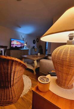 Haus bietet Platz für 4 Gäste. Die Betten sind in Schlafzimmern, die es 1 gibt, und in Wohnzimmer, innerhalb einer Gesamtfläche von 44m2, angeordnet. Die Gäste haben eine eigene Terrasse zur Verfügung, auf der sie in warmen Sommernächten genießen können. Es ist erlaubt, Speisen auf dem Gemeinschafts-Grill vorzubereiten. In der Unterkunftseinheit besteht die Möglichkeit des Mitbringens von Haustieren, und die Dienstleistung ist im Preis der Unterkunft enthalten.
