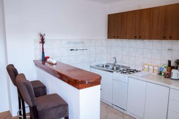 Ferienwohnung bietet Platz für 5 Gäste. Die Betten sind in Schlafzimmern, die es 2 gibt, und in Esszimmer, innerhalb einer Gesamtfläche von 65m2, angeordnet. Die Gäste haben eine eigene Terrasse zur Verfügung, auf der sie in warmen Sommernächten genießen können. Es ist erlaubt, Speisen auf dem Gemeinschafts-Grill vorzubereiten. In der Unterkunftseinheit besteht die Möglichkeit des Mitbringens von Haustieren, und die Dienstleistung ist im Preis der Unterkunft enthalten.