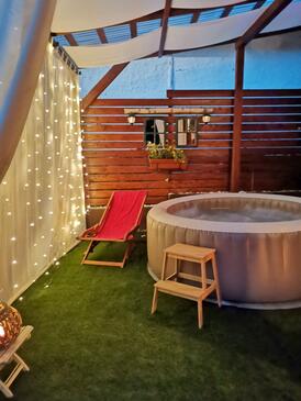 Haus bietet Platz für 4 Gäste. Die Betten sind in Schlafzimmern, die es 1 gibt, und in Wohnzimmer, innerhalb einer Gesamtfläche von 81m2, angeordnet. Die Gäste haben eine eigene Terrasse zur Verfügung, auf der sie in warmen Sommernächten genießen können. Für vollen Genuss und Entspannung gibt es einen privaten Grill für Gäste dieser Unterkunft. Räume der gebuchten Unterkunftseinheit werden nicht in eine Ganze verbunden.