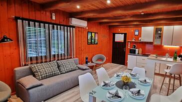 Haus bietet Platz für 6 Gäste. Die Betten sind in Schlafzimmern, die es 3 gibt, und in Wohnzimmer, innerhalb einer Gesamtfläche von 55m2, angeordnet. Die Gäste haben eine eigene Terrasse zur Verfügung, auf der sie in warmen Sommernächten genießen können. Für vollen Genuss und Entspannung gibt es einen privaten Grill für Gäste dieser Unterkunft. Während ihres Aufenthalts können sich Gäste im privaten Schwimmbad entspannen. Räume der gebuchten Unterkunftseinheit werden nicht in eine Ganze verbunden.