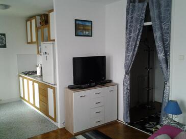 Studio bietet Platz für 3 Gäste. Die Betten sind in Schlafzimmern, die es 1 gibt, innerhalb einer Gesamtfläche von 23m2, angeordnet. Die Gäste haben einen eigenen Balkon zur Verfügung, auf der sie in warmen Sommernächten genießen können. Es ist erlaubt, Speisen auf dem Gemeinschafts-Grill vorzubereiten.