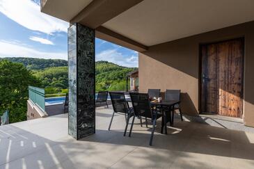 Haus bietet Platz für 9 Gäste. Die Betten sind in Schlafzimmern, die es 3 gibt, und in Wohnzimmer, innerhalb einer Gesamtfläche von 163m2, angeordnet. Die Gäste haben eine eigene Terrasse zur Verfügung, auf der sie in warmen Sommernächten genießen können. Für vollen Genuss und Entspannung gibt es einen privaten Grill für Gäste dieser Unterkunft. Während ihres Aufenthalts können sich Gäste im privaten Schwimmbad entspannen. In der gebuchten Unterkunftseinheit zahlt man am Ort ein Depositum ( der Preis ist an der Internetseite angeführt ).