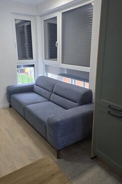 Ferienwohnung bietet Platz für 3 Gäste. Die Betten sind in Schlafzimmern, die es 1 gibt, und in Wohnzimmer, innerhalb einer Gesamtfläche von 41m2, angeordnet. Die Gäste haben einen eigenen Balkon zur Verfügung, auf der sie in warmen Sommernächten genießen können. In der Unterkunftseinheit besteht die Möglichkeit des Mitbringens von Haustieren gegen Aufpreis.