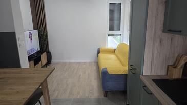 Ferienwohnung bietet Platz für 3 Gäste. Die Betten sind in Schlafzimmern, die es 1 gibt, und in Wohnzimmer, innerhalb einer Gesamtfläche von 41m2, angeordnet. Die Gäste haben einen eigenen Balkon zur Verfügung, auf der sie in warmen Sommernächten genießen können. In der Unterkunftseinheit besteht die Möglichkeit des Mitbringens von Haustieren gegen Aufpreis.